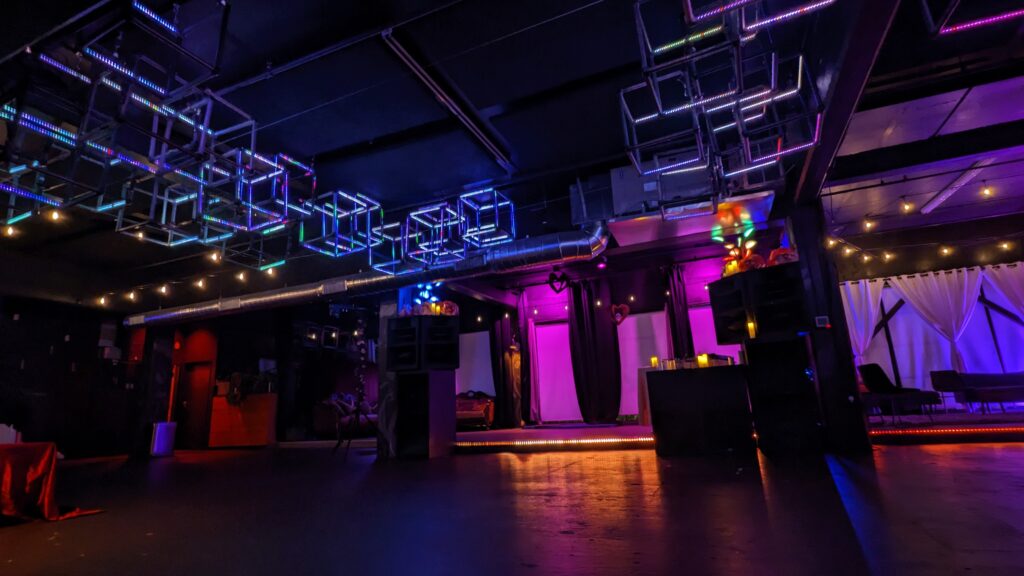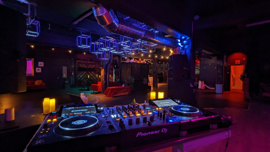 3rd floor location. Kicking soundsystem. Pinoneer 3000s CDJs. Danley Subs. Custom Turbosound Tops. Programmable lighting throughout. 2 Bathrooms. Green Room. Lounge/Chill spaces. More.